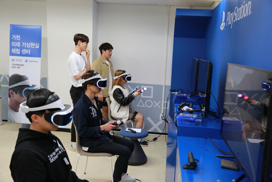 가천미래가상현실체험센터는 가천대 비전타워 지하3층에 위치해 있다. 99.173m² 규모로 소니 플레이스테이션4 Pro 7대, 소니 플레이스테이션 VR 7대, HTC vive 3대 등 가상현실을 체험할 수 있는 최신기기를 갖추고 있다.
