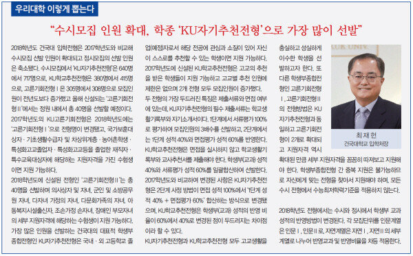 [대학저널 신효송 기자] 건국대학교(총장 민상기)는 ‘지능정보화 사회’로 진입하는 4차 산업혁명 시대 융합인재 양성을 위해 대대적인 교육혁신을 가속화하고 있다. 건국대는 프라임(PRIME·산업연계교육 활성화 선도대학) 사업을 통해 산업계와 학생들의 수요를 고려한 산업수요 맞춤형 인재양성을 목표로 ‘KU융합과학기술원’을 설립한데 이어 최근 ‘프라임(PRIME) 건국 2020’ 비전을 발표하며 타인과 함께 소통하고 융합하며 글로벌사회를 이끌어나갈 융합형 인재를 길러내고 있다.