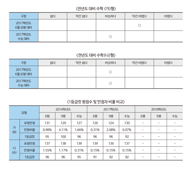 이투스 교육평가연구소의 '2018학년도 6월 모의평가 2교시 수학 영역 출제경향 분석'에 따르면 전반적인 난이도는 평이했으나, 매년 출제됐던 <보기> 문항이 가, 나형 모두 출제되지 않은 것으로 나타났다.