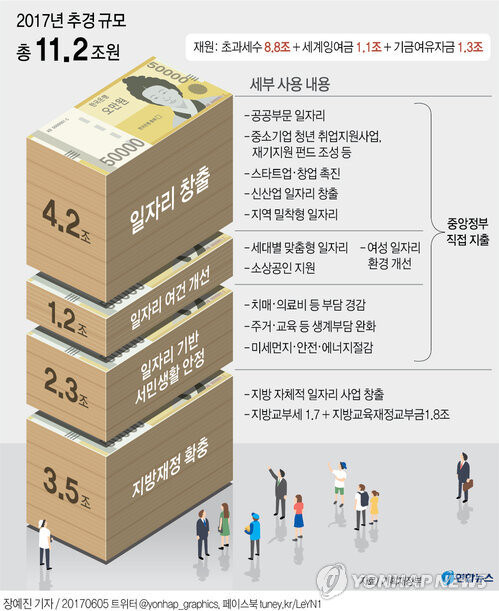 기재부에 따르면 추경은 문재인 대통령의 공약 실현을 목표로 일자리 창출과 일자리 여건 개선에 중점을 두고 편성됐다.