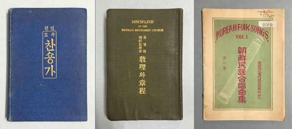 이밖에 합창으로 편곡한 민요 악보집도 기증받았다. '조선민요합창곡집'(1931)은 미 감리회 선교사이자 이화여자전문학교 음악교수로 재직했던 메리 영(Mary E. Young)이 1931년 편찬한 한국전통의 민요악보집이다. 도라지타령, 방아타령, 농부가 등 총 7편의 민요에 화성을 붙여 합창으로 편곡했다. 위당 정인보 선생의 머리말이 수록돼 있다. 기독교가 우리 민족음악의 근대화에 기여했던 면을 살펴볼 수 있는 자료이다.