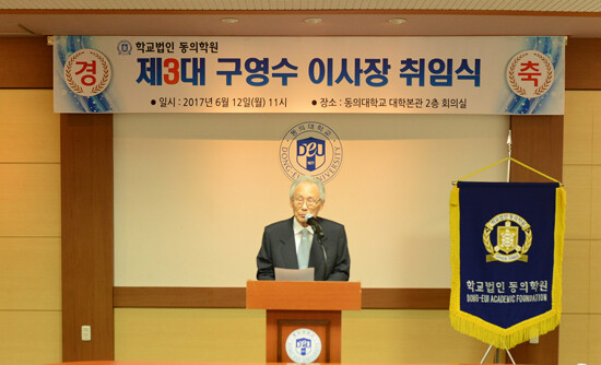 구 이사장은 취임사를 통해 "겸허한 자세로 모든 구성원들과 항상 협의하고 소통하면서 맡은 바 소임에 최선을 다 하겠다. '숲이 우거지면 새가 날아든다' 는 선대 이사장님의 숭고하신 교육철학을 가슴에 새기고 계승하면서 자랑스러운 동의학원의 무궁한 발전과 번영을 위해 혼신의 노력을 다하겠다"고 말했다.