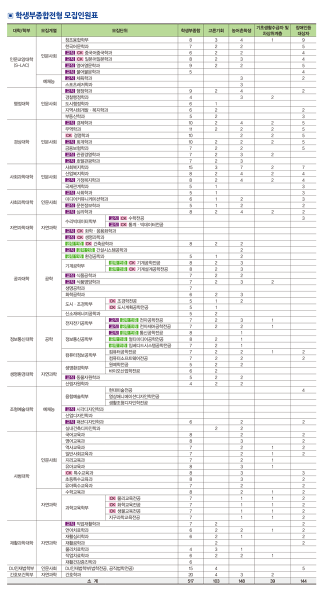 대학의 인재상과 학과의 특성에 맞춘 학생 선발, 고교생활과 교내활동을 성실하게 하였다면 지원가능