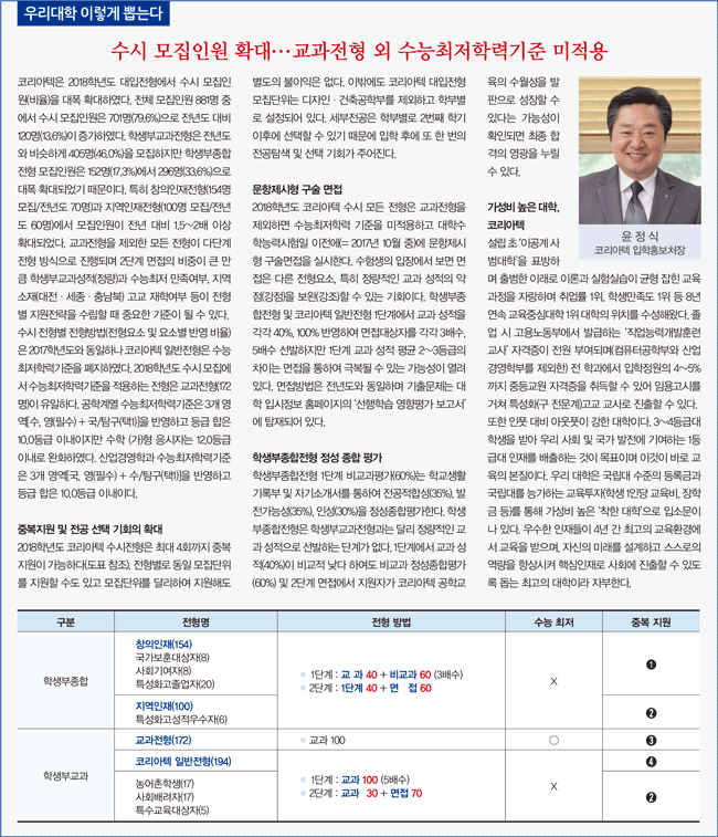 코리아텍은 올해 겹경사를 맞았다. 교육부로부터 사회맞춤형 산학협력 선도대학(LINC+) 육성 사업 중 산학협력 고도화형에 선정, 정부로부터 향후 5년간 최대 160억 원을 지원받는다. 더불어 2017 대학 자율역량강화사업(ACE+) 사업에 선정돼 4년간 80억 원을 지원받는다.
