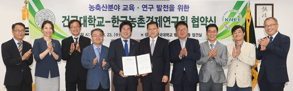 [대학저널 신효송 기자] 건국대학교(총장 민상기)와 한국농촌경제연구원(원장 김창길)이 24일 농축산분야 교육과 연구 발전을 위한 상호 협력 협약(MOU)을 체결했다.
