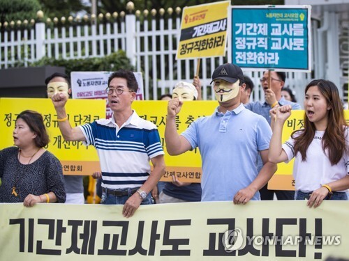기간제교사연합회는 이날 성명에서 "보수적 교원 단체인 한국교원단체총연합회가 정규직화 반대 서명을 받는 상황에서 전교조마저 정규직화에 반대한 것에 실망감과 분노를 감출 수 없다"고 말했다.