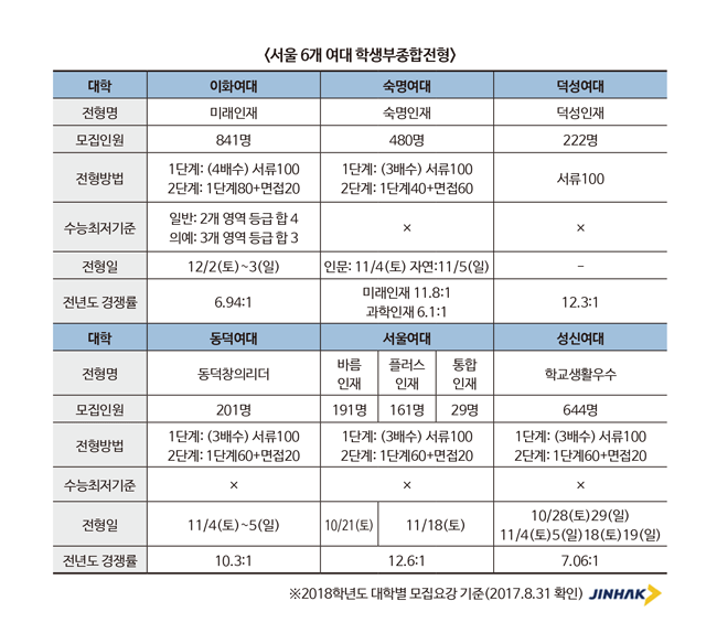 학생부종합전형, 이화 수능최저 존재…덕성은 서류만 제출