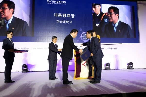 [대학저널 박용우 기자] 한남대학교(총장 이덕훈)가 14일 서울 코엑스에서 열린 중소벤처기업부 주최 제18회 중소기업기술혁신대전에서 기술혁신부문 산학연유공자 대통령 표창을 수상했다.