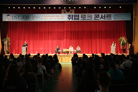 [대학저널 유제민 기자] 대전과학기술대학교(총장 김은기)가 마련한 '2017 취업 토크콘서트' 행사가 26일 대전과기대 창대체육관에서 1000여 명의 재학생들이 참석한 가운데 열렸다.