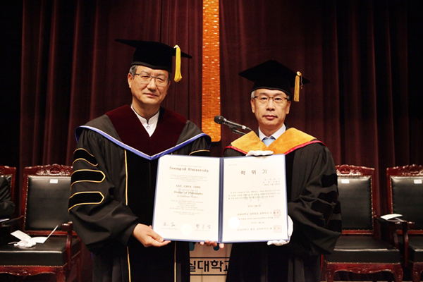 황준성 총장은 “이산대학인 숭실대가 역사로 미래를 열고 통일시대 통일대학으로서 굳게 자리매김할 수 있도록 늘 기도해주시고 물심양면으로 후원해 주시는 영락교회와 이 목사님께 숭실 개교 120주년을 맞아 명예기독교학박사학위를 수여한다”고 수여사를 전했다.
