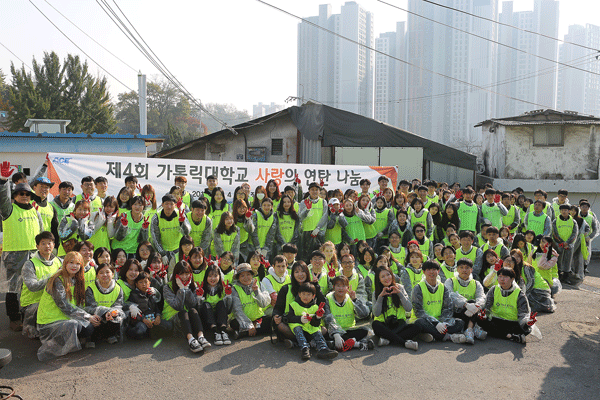 [대학저널 신효송 기자] 가톨릭대학교 원종철 총장을 비롯한 학생, 교직원 및 가족 240여 명이 지난 4일 경기도 부천시 계수동에서 ‘사랑의 연탄 나눔’ 봉사활동을 펼쳤다.