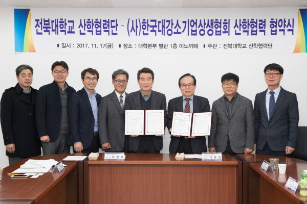 [대학저널 임지연 기자] 전북대학교(총장 이남호) 산학협력단이 17일 전북대 본부별관에서 한국대강소기업상생협회(회장 심상돈)와 산학협력을 위한 업무협약을 체결했다.