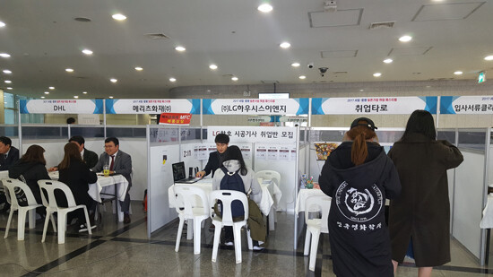 특히 구직활동에 지친 구직자들을 위해 마련된 '스트레스검사와 심리상담'(서일대 학생상담센터), '용기백배 청년힐링콘서트'(부산행 제작PD 이동하 강사)가 많은 참가자들의 호응을 얻었다.