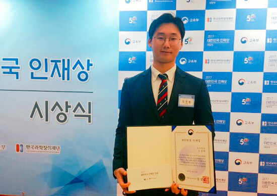 [대학저널 유제민 기자] 울산대학교(총장 오연천) 첨단소재공학부 3학년 김정현 씨가 30일 서울 세종문화회관에서 열린 '2017 대한민국 인재상' 시상식에서 대한민국인재상을 수상했다. 김 씨는 4차 산업혁명 시대를 선도해 갈 창의·융합적 우수 인재로 선정돼 이번 수상에 이르게 됐다.