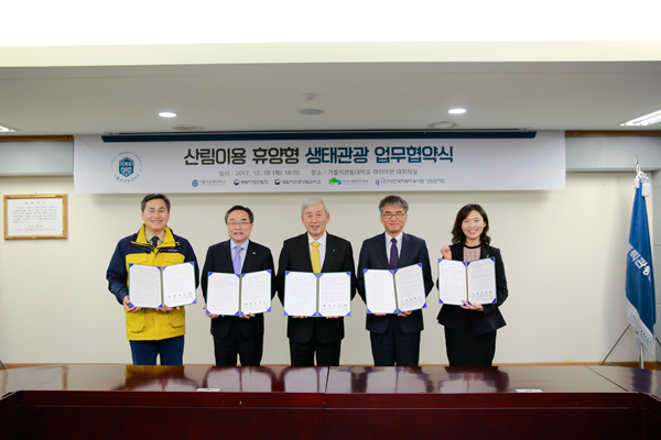 [대학저널 신효송 기자] 가톨릭관동대학교(총장 천명훈)가 동부지방산림청(청장 고기연), 국립자연휴양림관리소(소장 정영덕), 한국산림복지진흥원(원장 윤영균), (사)한국피부미용사회 강원도지회(지회장 김수정)와 지난 2017년 12월 28일 협약을 체결했다.