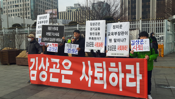 [대학저널 신효송 기자] 공정사회를위한국민모임(대표 이종배, 이하 국민모임)은 지난 18일 서울정부청사 정문에서 김상곤 교육부장관 사퇴촉구 기자회견을 가졌다.