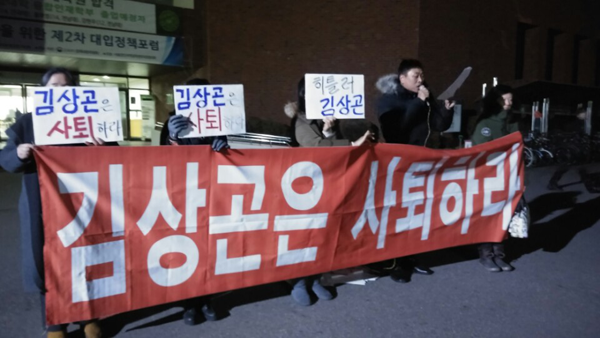 [대학저널 신효송 기자] 공정사회를위한국민모임(대표 이종배, 이하 국민모임)이 지난 24일 건국대 법학전문대학원 앞에서 김상곤 교육부장관 사퇴촉구 기자회견을 가졌다.