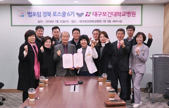 이날 행사에는 황미영 대구보건대병원장과 전정주 법포럼경북로스쿨 원장 등 양 기관 주요 관계자 30여 명이 참석했다.