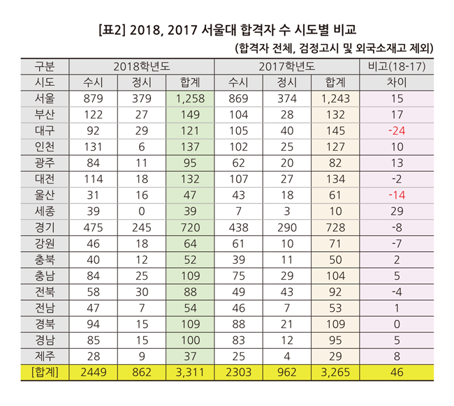 종로학원하늘교육은 28일 ‘2018, 2017 서울대 고교별 합격자 수 분석 결과’를 공개했다.