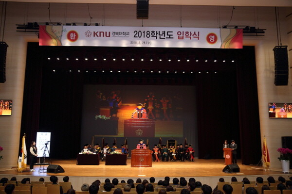 [대학저널 임지연 기자] 경북대학교(총장 김상동) 2018학년도 신입생 입학식이 지난 2월 28일 오전 10시 30분과 오후 2시 30분 두 차례에 걸쳐 경북대 대강당에서 열렸다.