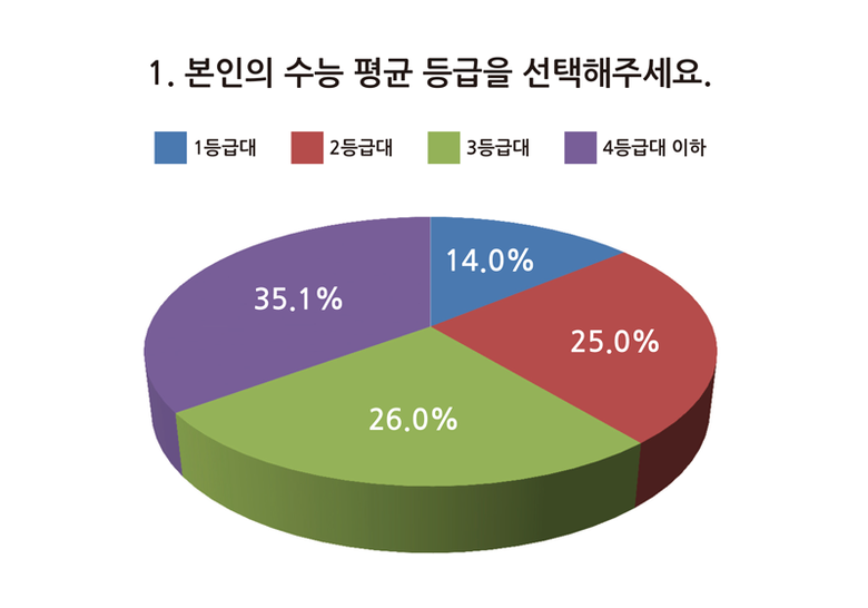 ‘논술 등 수시지원 대비’ 때문이라는 응답자 가운데 1~2등급대는 평균 8.1%였던 반면, 3등급대는 1.9%로 차이를 보였다. 이는 논술이 수능 1~2등급대 상위권 학생들 위주로 준비되고 있음을 보여주는 결과라고 진학사 측은 설명했다.