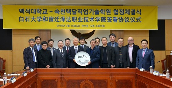 [대학저널 임승미 기자] 백석대학교(총장 장종현)는 16일 백석대 본부동 12층 소회의실에서 중국 장수성(江蘇) 수첸시(宿遷)에 위치한 숙천택달직업기술학원(宿迁泽达职业技术学院)과 교류협력 협약을 체결했다.