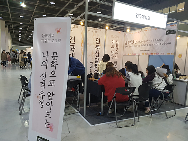 특히 건국대 서사와문학치료연구소에서 개발한 자기서사진단도구를 활용해 관람객들의 성격 유형을 직접 진단하고 그 결과를 설명 및 상담하는 기회를 가졌다. 이들은 인문상담치유 부스에서 직접 진단지를 작성하고 300명에 달하는 인원과 상담을 진행하며 자신의 성격을 진단결과를 통해 확인하고 점검하는 시간을 보냈다.