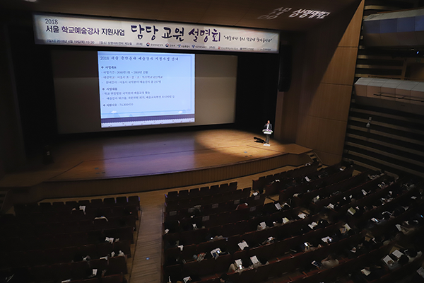 [대학저널 신효송 기자] 상명대학교(총장 백웅기) 학교문화예술교육센터(사업단장 김종희 행정대외부총장, 이하 김종희 단장)가 '2018년 학교 예술강사 지원사업의 서울지역 지원학교 담당교원 설명회'를 19일 상명대 문화예술관 계당홀에서 개최했다.