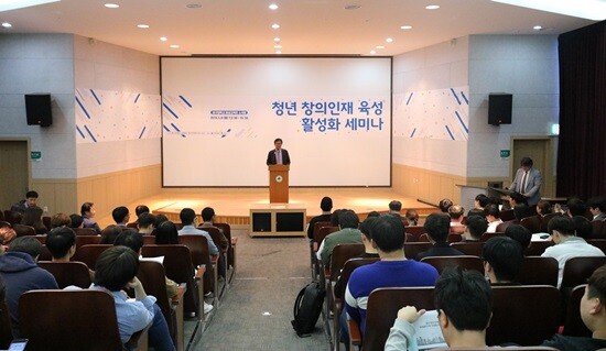세미나는 윤재웅 산학협력단장과 이정우 경상북도 사무관의 인사말을 시작으로, 강호제 국토연구원의 ‘청년 창의인재 융합클러스터 조성사업 안내’, 이정우 과학기술정책연구원의 ‘한국의 Young Innovators' 특강이 진행됐다. 이어진 토닥토닥 협동조합의 이영희 대표는 ‘겁 없는 도전, 빛나는 실패’라는 주제 특강을 통해 두려움을 갖지 말고 원하는 목표를 향해 과감히 도전해 보라고 지역 청년창업자와 대학생을 격려했다.