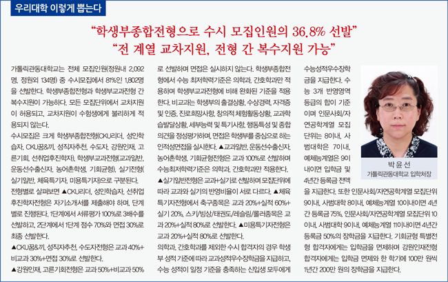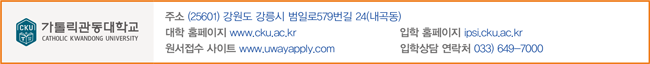 [대학저널 신효송 기자] 창학 63년을 맞이한 가톨릭관동대학교(총장 천명훈)는 대학 비전을 ‘미래가치를 디자인하는 창의실용교육 중심대학’으로 천명하고 대학발전을 위한 로드맵을 세밀하게 시행해 대학의 면모를 빠르게 변화시키고 있다.