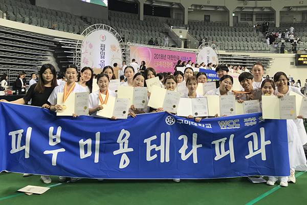 이 대회에서 구미대 피부미용테리피 전공과 의료미용과(전공심화) 학생들은 보건복지부장관상, 국제시데스코상, 대회장상, 금상, 은상 등 참가자 16명 전원이 입상하는 성과를 올렸다.