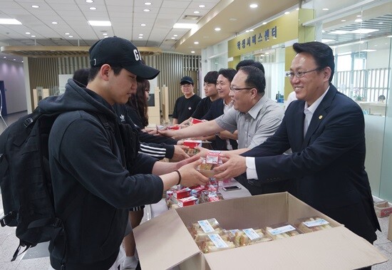 이 날 첫 번째로 간식을 받은 멀티미디어학과 4학년 전정훈 학생은 “수년째 간식 나눔 행사를 통해 응원을 받으며 시험을 준비 한다”며 “든든하게 잘 먹고 열심히 공부해서 좋은 성적으로 보답 하겠다”고 말했다.