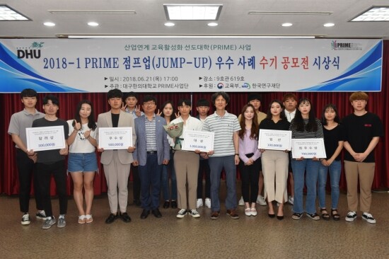 [대학저널 오혜민 기자] 대구한의대학교(총장 변창훈) PRIME사업단은 학생들의 진로개발을 통한 우수 사례를 발굴하기 위해 ‘PRIME점프 업(JUMP-UP) 우수사례 수기 공모전’을 진행했다.