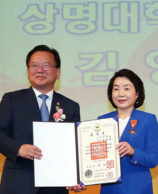 [대학저널 최진 기자] 상명대학교(총장 백웅기) 공공인재학부 김영미 교수가 지난 20일 서울 광화문 KT드림홀에서 열린 ‘제1회 전자정부의 날 기념식’에서 ‘녹조근정훈장’을 수상했다. 김 교수는 전자정부 발전에 기여한 공로를 인정받아 훈장을 받았다.
