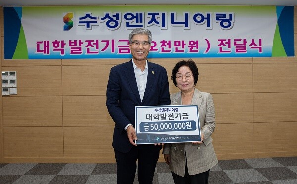 김남경 총장은 “우리 대학과 수성엔지니어링이 상호 협력 모델을 찾아 기업이 필요로 하는 인재를 양성하겠다”며 “지속적인 교류는 청년 실업 해소와 지역 경제 발전에 크게 기여할 것”이라고 말했다. 이어 “이번 기금은 우리 대학 발전을 위해 소중한 곳에 사용하겠다”라고 감사의 마음을 전했다.