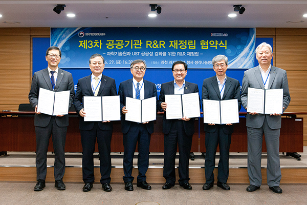 과학기술정보통신부(장관 유영민, 이하 과기부)와 과기부 산하 과학기술특성화 교육기관(광주과학기술원(GIST), 한국과학기술원(KAIST), 대구경북과학기술원(DGIST), 울산과학기술원(UNIST), 과학기술연합대학원대학교(UST))이 6월 29일 정부과천청사에서 4차 산업혁명 견인과 공공성 확보를 위한 고등교육기관의 역할과 책임(Role and Responsibility, 이하 R&R) 재정립 방안을 발표하고 업무협약을 체결했다.