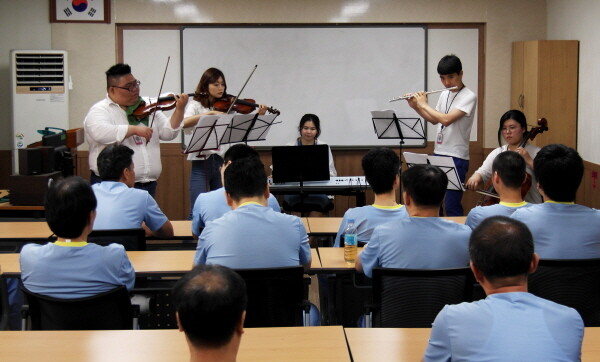 울산구치소 정창헌 소장은 “음악연주가 수형자들에게 심성순화 증진에 중요한 가치가 될 수 있음을 느끼게 해줬고, 궁극적으로 수용사고 예방 및 사회적응, 원활한 사회 복귀 증진 등 교정교화 향상에 많은 도움이 된다”고 말했다.