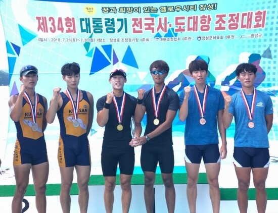 7월 28일부터 30일까지 전북 장성호조정경기장에서 열린 이번 대회에서 남자대학부 쿼드러플스컬 김규범, 박후칠, 장선호, 이시영 선수 조와 경량급 싱글스컬에서 김병우 선수가 금메달을 거머쥐었다.