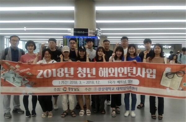 경상남도 청년 해외인턴사업은 만 34세(군필자 만 37세) 이하 미취업 청년으로서 사업신청일 현재 경남 도내에 주소를 두고 있는 대학생 30명을 선발해 베트남(호치민, 하노이), 일본(도쿄)에 있는 국제적 기업, 교포 기업 등에 파견하는 사업이다.