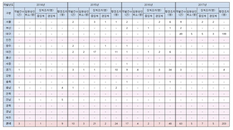 2014년 3건에 불과하던 사립학교 교원 채용비리는 2015년 10건, 2016년 17건, 2017년 63건으로 20배 이상 급증했다. 시·도별로는 대구가 49건으로 가장 많았으며 경기 16건, 서울 13건순이다. 인천, 울산, 강원, 전북, 경북, 전남, 제주에서는 사립학교 채용비리가 단 한 건도 적발되지 않았다.