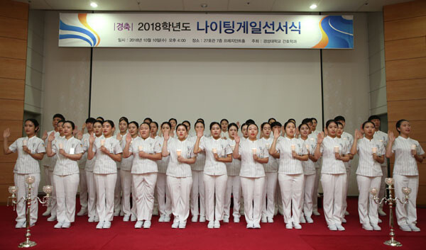 나이팅게일 선서식은 임상실습에 나가기 전 전문 간호사로서 책임을 다할 것을 다짐하는 행사다. 간호학과 학생들은 나이팅게일의 숭고한 희생정신을 이어받아 주어진 사명을 성실히 이행할 것을 선서한다.