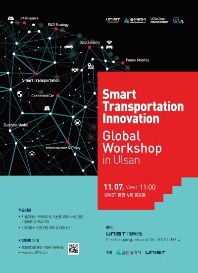 [대학저널 최진 기자] UNIST(총장 정무영)는 11월 7일 UNIST 대학본부 4층 경동홀에서 ‘울산 스마트 교통 혁신 글로벌 워크숍(Smart Transportation Innovation Global Workshop in Ulsan)’을 개최한다.