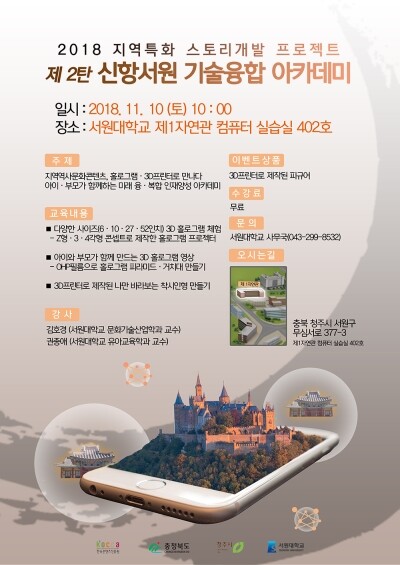 한편 서원대 산학협력단과 국제통합예술교육협회는 문화체육관광부와 한국콘텐츠진흥원이 진행하는 ‘2018 지역특화 스토리개발 프로젝트’ 사업에 선정돼 신항서원을 활용한 디지털 융·복합 문화콘텐츠 개발을 목표로 다양한 프로그램을 추진하고 있다.