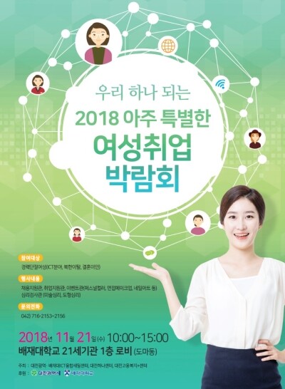 [대학저널 오혜민 기자] 북한이탈여성, 결혼이주여성, ICT전문여성을 대상으로 한 특별한 취업박람회가 오는 21일 배재대 배재21세기관에서 열린다.