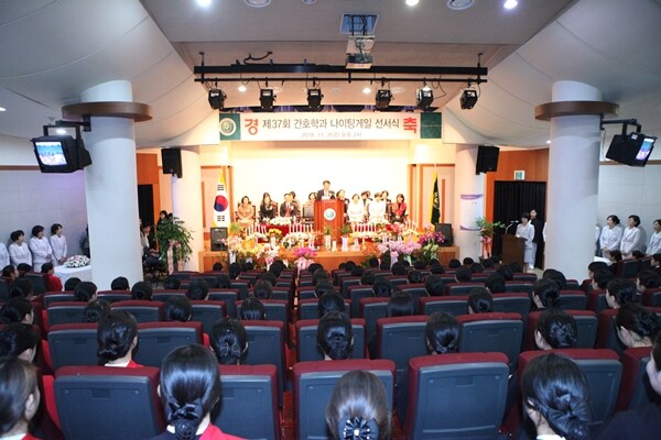 올해로 37번째를 맞는 간호학과 ‘나이팅게일 선서식’은 생명을 존중하는 간호사가 되기 위한 선서식으로 엄숙한 분위기에서 진행됐다.