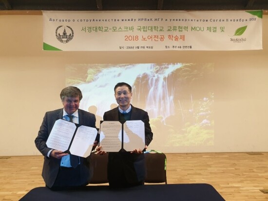 [대학저널 오혜민 기자] 서경대학교(총장 최영철) 국제비즈니스어학부(학부장 안병팔)는 지난 15일 오후 6시 서경대 본관 8층 컨벤션홀에서 러시아 국립모스크바대 러시아어·문화센터(E. N 콥툰)와 상호 교류협력 및 발전을 위한 업무협약을 체결했다.