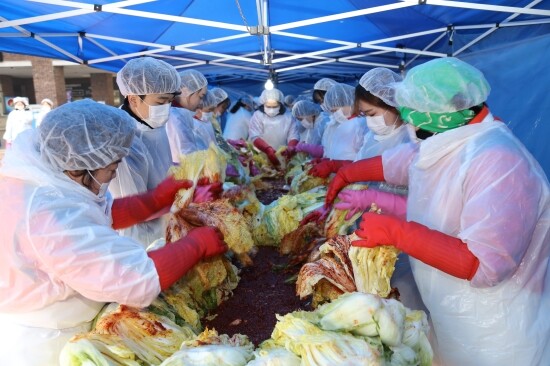 대진국제자원봉사단의 배추와 양념 등 재료 후원으로 진행된 이날 행사에는 대진대 교직원 및 자원봉사 학생 등 80여 명이 참여해 성황을 이뤘다. 오전부터 이어진 이날 봉사는 대진대 구성원들의 정성과 노력으로 관내 50가구에게 전달될 300포기 김치가 만들어졌다.