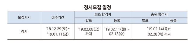 전문대학 정시모집 접수기간은 12월 29일부터 2019년 1월 11일까지이며 대학간 복수지원 및 입학지원 횟수도 제한이 없다.