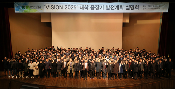 [대학저널 김등대 기자] 건양대학교(총장 이원묵)가 대학 교직원 600여 명과 대학 법인을 비롯한 단체들이 참석한 가운데 <‘VISION 2025' 대학 중장기 발전계획 설명회>를 개최했다.