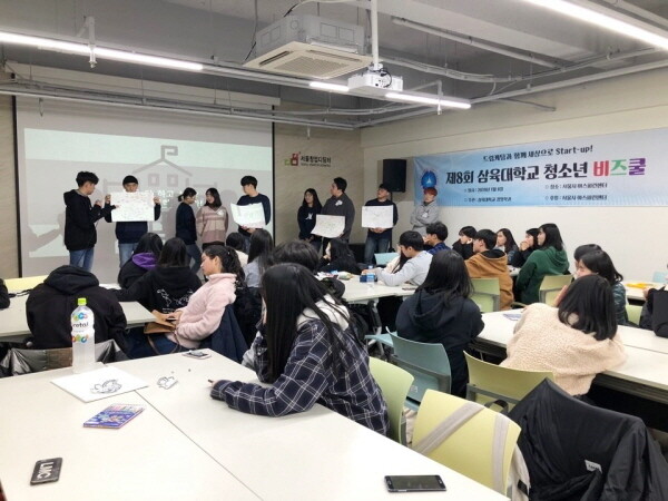 [대학저널 임지연 기자] 삼육대학교(총장 김성익) 경영학과 창업동아리 드림케팅(지도교수 박철주) 학생들이 창업디딤터에서 서울 지역 청소년을 대상으로 한 창업교육 ‘제8회 삼육대학교 청소년 비즈쿨’을 개최했다.